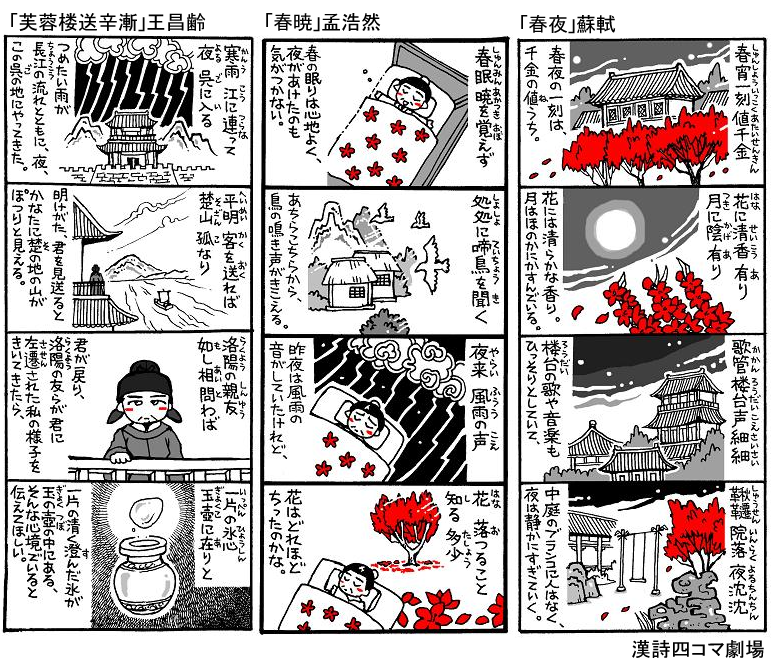 漢詩(中国古典詩)を四コマ漫画で描いた作品を、200本以上掲載しています。