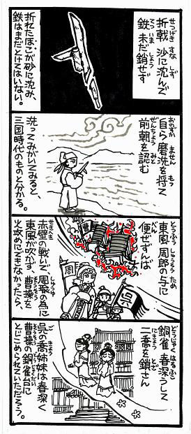 もし、あの戦いで、曹操の船を火攻めにできなかったら…という、歴史の「もし」を描く詩ですが、そこに、呉の名花たる大喬・小喬の姉妹を登場させ、華を添えています。